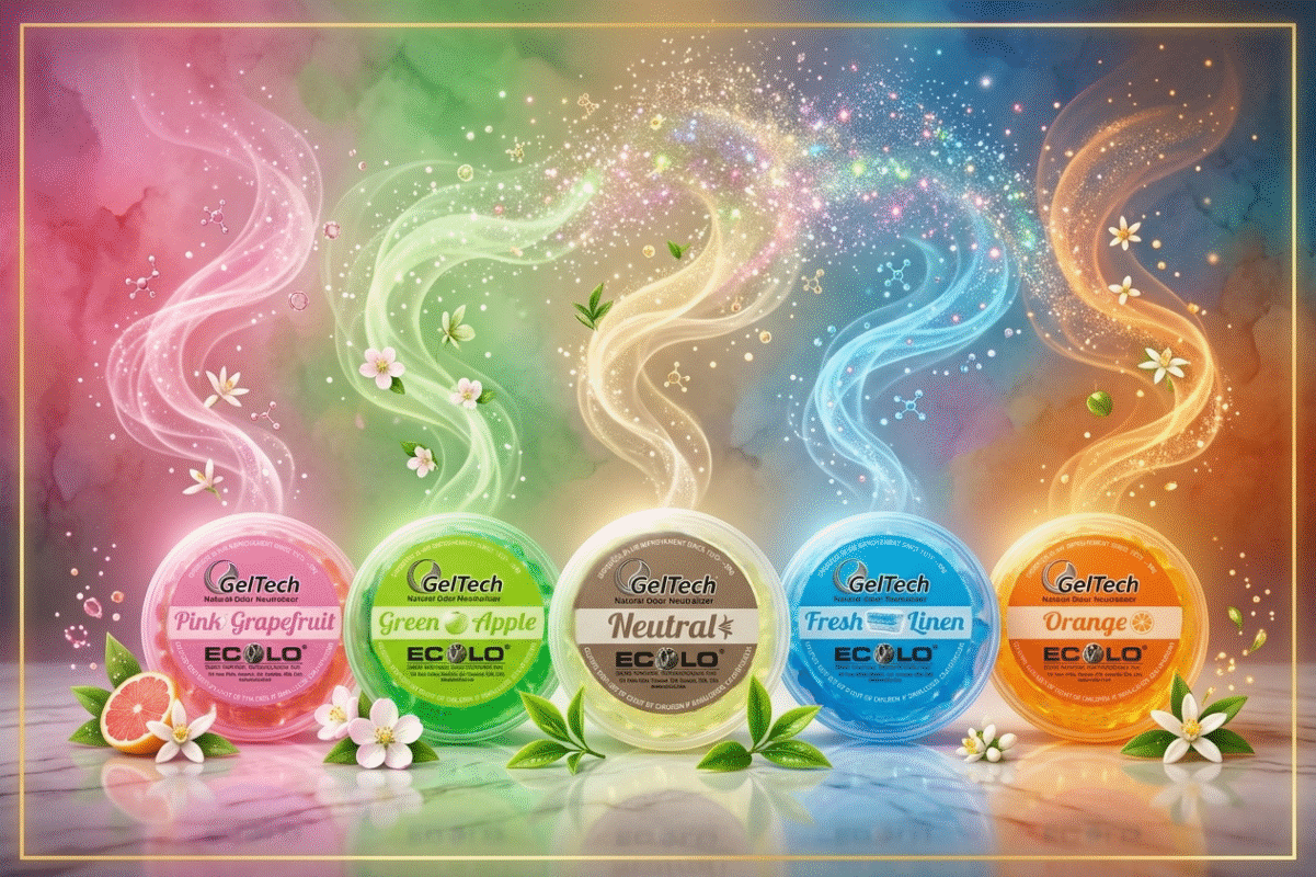 GelTech uses slow-release odour absorbing gels formulated with neutralizers that continuously capture and bind odour molecules. The gels evaporate gradually, providing up to 30–60 days of steady performance.